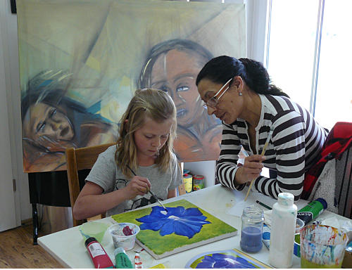 Warum ist Malunterricht für Kinder und Jugendliche wichtig?In der heutigen Zeit, wo die Industrie schon 6-jährige Kinder zuwilligen Konsumenten erzieht, ist es besonders wichtig, dass das Wesen in uns seine eigene Kreativität entwickelt.Malen ist einer der besten Wege, die sich entwickelndeWahrnehmungen bei Kindern zu fördern.Natürlich soll der Umgang mit Form und Farbeauch Spaß machen und den Kindern Erfolgserlebnisse,ermöglichen, die für Ihre Persönlichkeitsentwicklung sehr wichtigsind.Das Programm in meinen Kursen, läuft nicht nach einem starrenProgramm ab, sondern orientiert sich weitgehendnach den Bedürfnissen und Möglichkeiten der Kinder.
